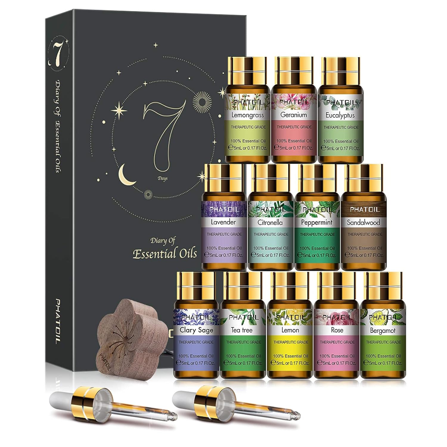 --【Perfect Gift Set】: 12 in 1 set essential oils, 5ml each bottle, Comes with compact and beautiful gift box, it is also an ideal gift for your family, friends and lovers in birthday, anniversary, Valentine's Day, Christmas and other festivals. Exquisite and practical gift set, give your beloved ones the best comfortable environment and enjoyment with PHATOIL Essential Oils.
